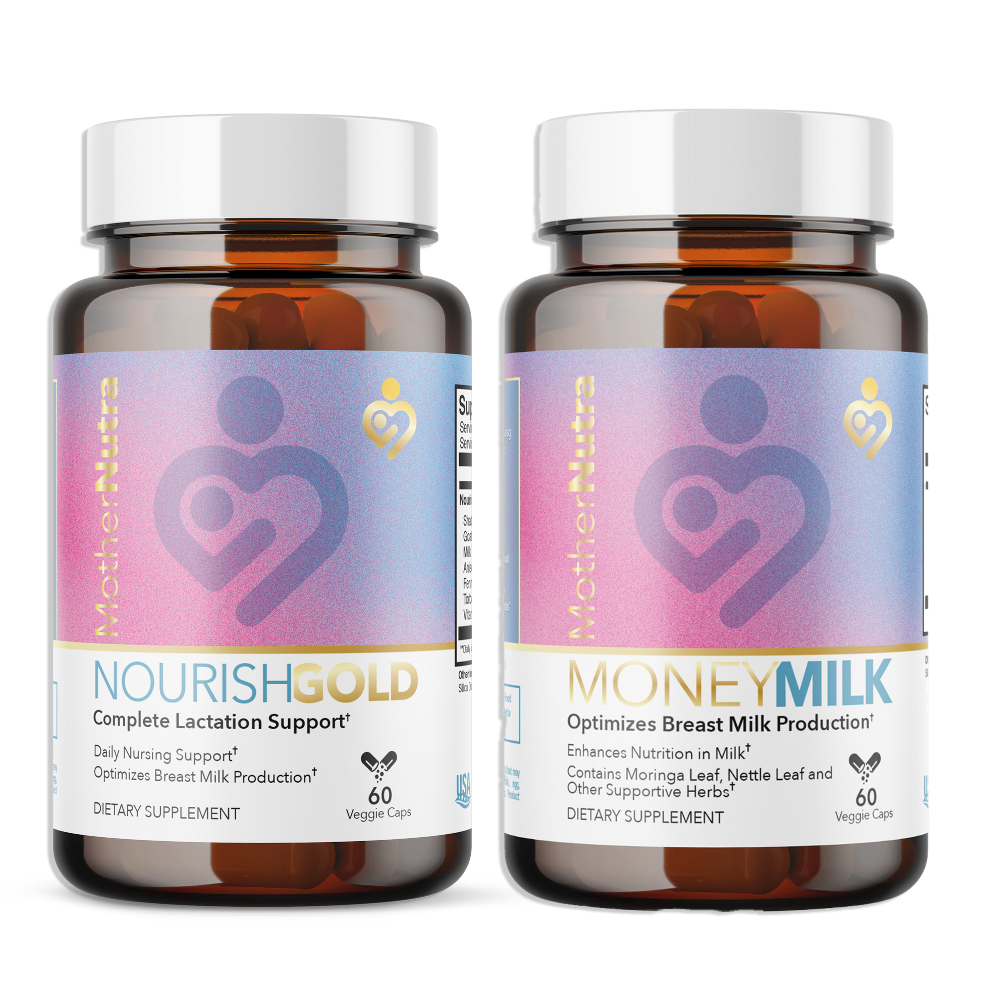 If you're looking for the perfect way to support your lactation, look no further than our New Mom Bundle! This bundle includes our Nourish Gold lactation supplement and MoneyMilk breast milk booster.